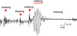 - De détecter et quantifier de façon manuelle ou automatique (traitement du signal, décomposition temps-fréquence) des comportements spécifiques (par exemple tremblements, décours temporel de l’impulsion de chaque pas dans la locomotion, de chaque mouvement de toilettage, etc…)