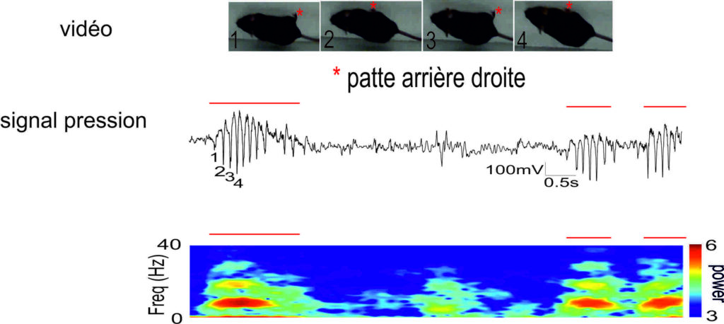 Le comportement est enregistré de façon synchronisée en vidéo pour avoir le corrélat comportemental exact des signaux issus des capteurs piézoélectriques.